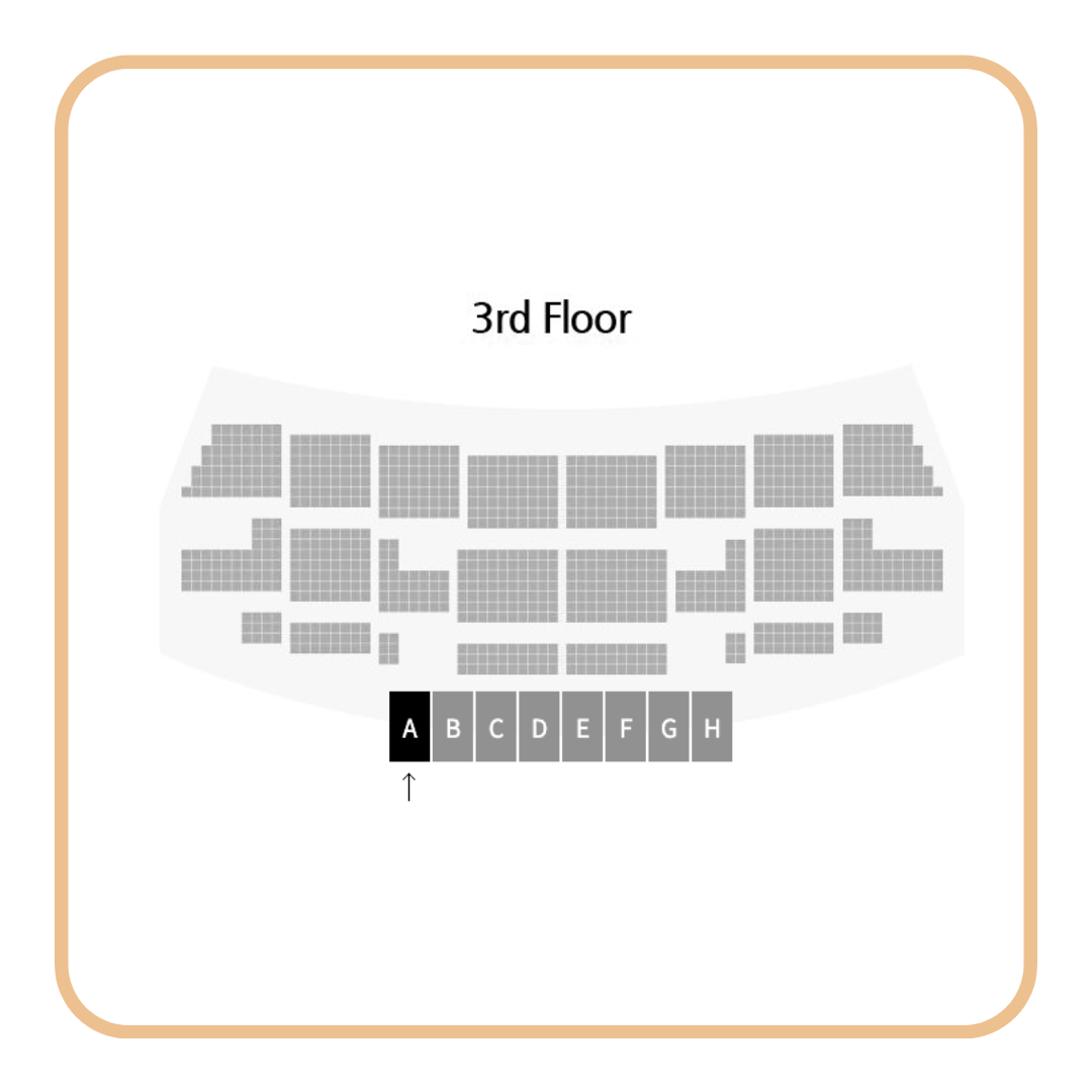 마지막 가장 높은 3층 배치도입니다. 2층 보다 세분화 되어진 좌석으로 나누어져 있으며 A~H 좌석까지 있는 것을 확인하실 수 있습니다.