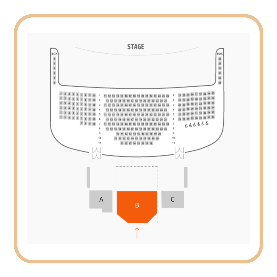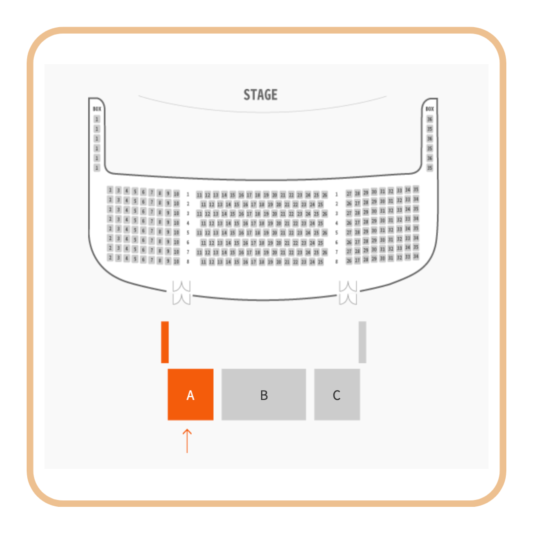 1층 좌석은 총 690석으로 가장 많은 좌석을 보유하고 있습니다. A, B, C 총 3개의 사이드로 나누어져 있습니다.