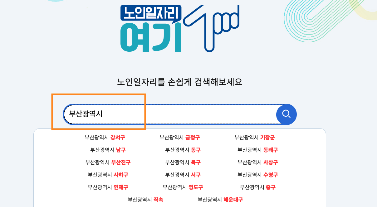 1. 노인 일자리 찾기 버튼을 클릭하면 일자리 검색 페이지가 나타납니다.