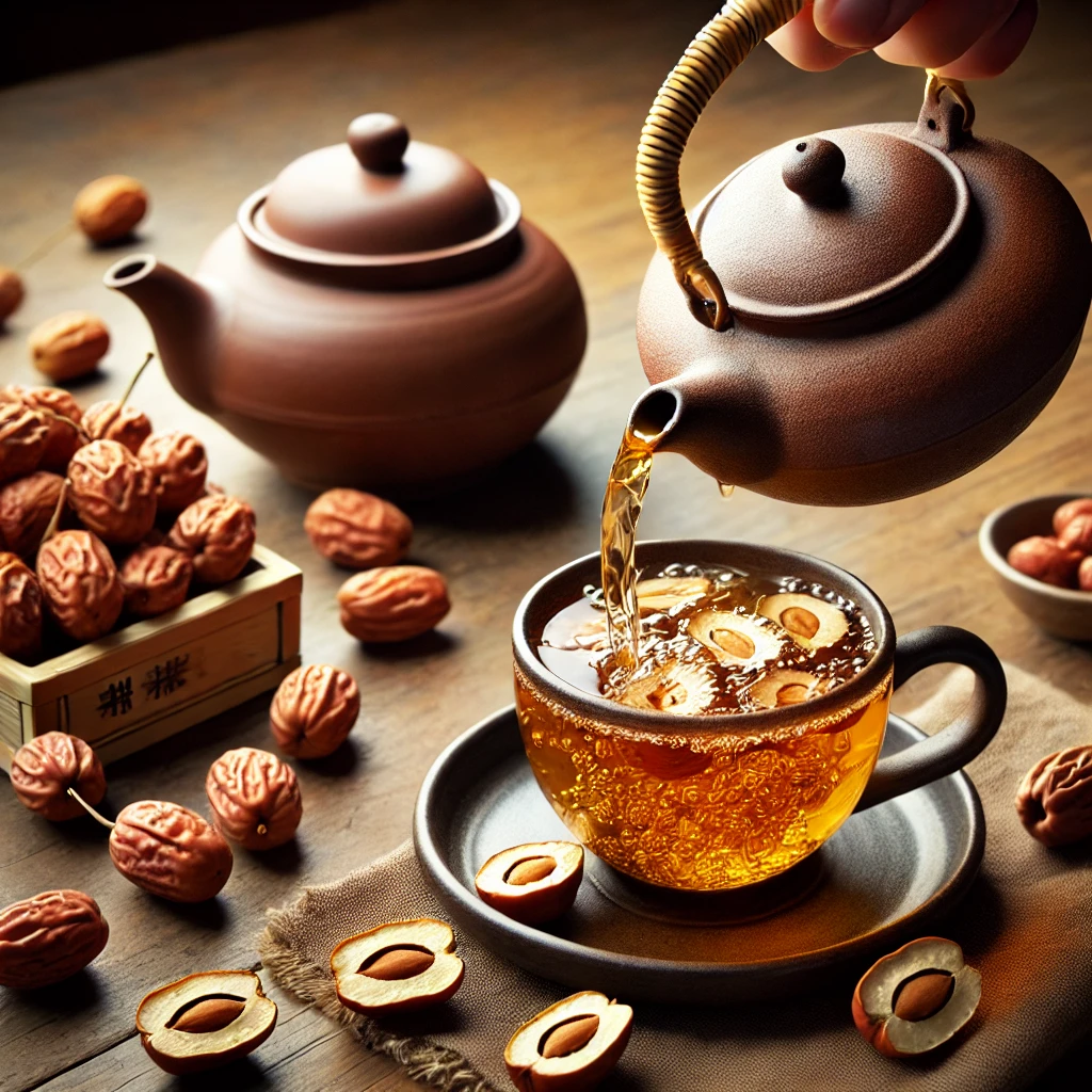 대추는 단맛이 있어 심리적으로 안정감을 주는 효과가 있습니다. 갱년기 증후군으로 인해 불안하거나 불면 증상을 겪는 분들에게 추천할 수 있는 차입니다.