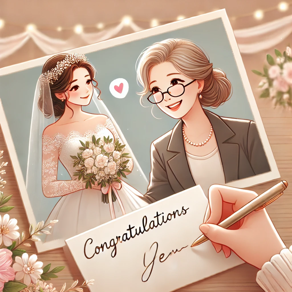 멋진 신랑(신부)과 평생 행복하길 바라! 정말 축하하고, 언제나 응원할게!