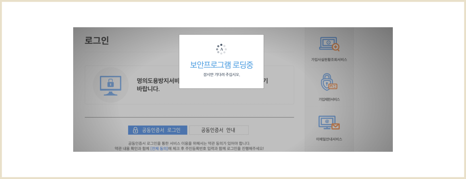 공동인증서로 로그인 후, 모든 통신사에 가입제한 설정을 진행합니다.