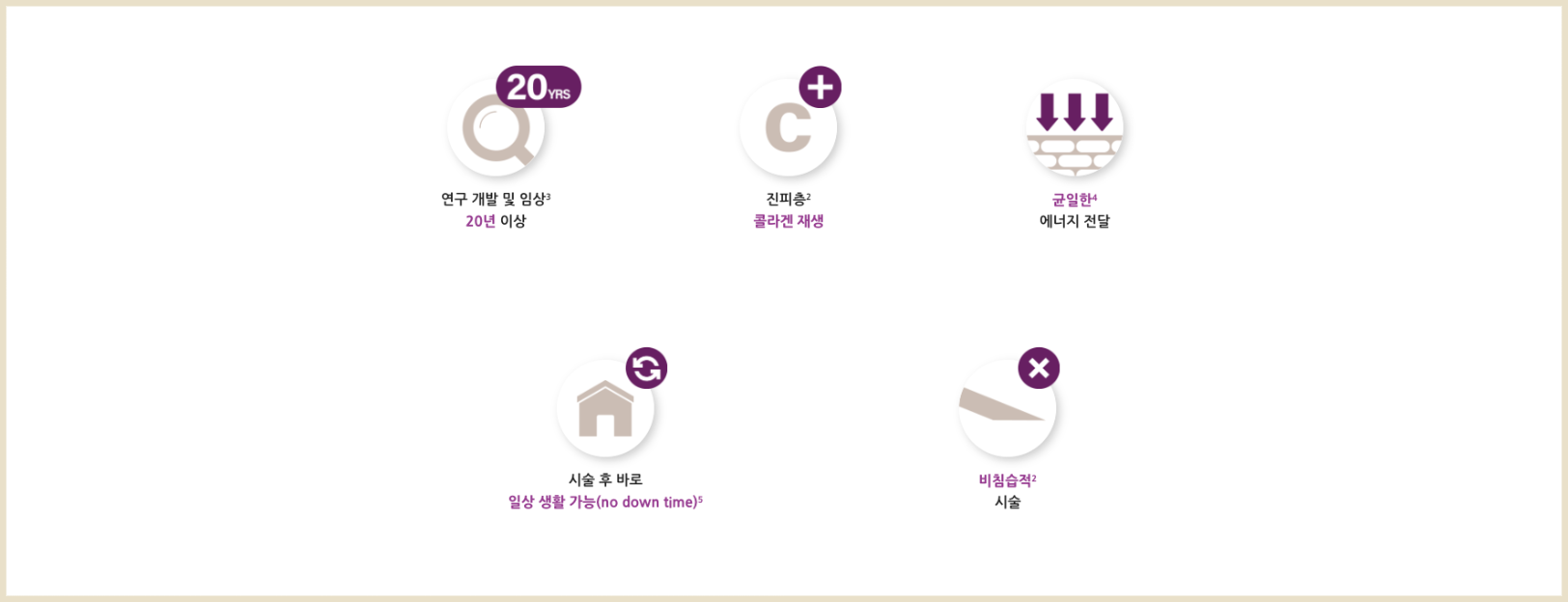 진피층까지만 열이 전달되기 때문에 지방층에 영향을 미치지 않아 얼굴이 꺼지는 부작용이 없습니다.