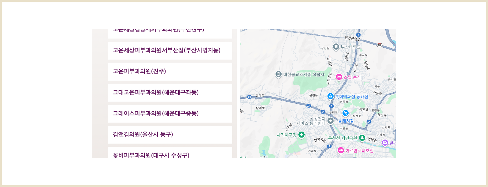 인증된 써마지 정품 인증된 장비를 사용하고 있는 서울, 수도권, 대전, 대구, 전라, 경상도 등 지역별로 병원을 찾으실 수 있습니다.