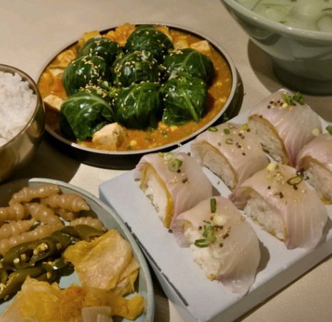 묵은지에 말아서 나오는 회는 처음 맛보는 맛이에요.
