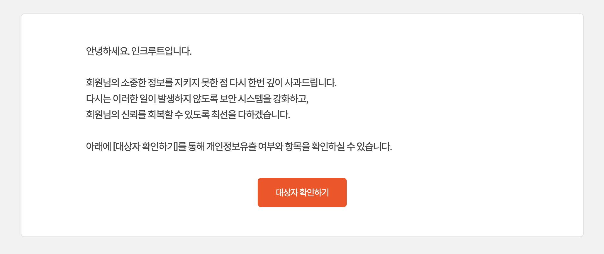 최근 인크루트 해킹 사건으로 인해 다수의 회원 정보가 유출된 것으로 확인되었습니다. 😨