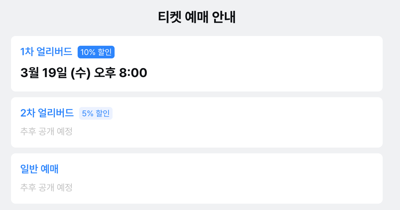 - 2차 얼리버드 / 일반 예매: 추후 공개